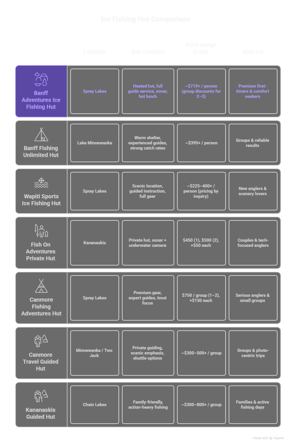 Most people searching “ice fishing huts in Banff” aren’t actually looking for a hut they can rent and use alone. What they’re really asking is: